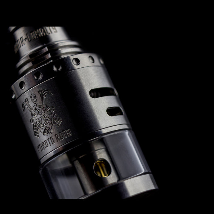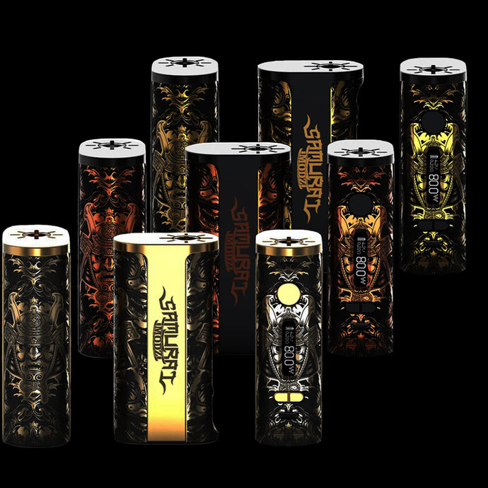Bushido Mod V3 is our latest Mech Mod at 24mm diameter and 24k Plated in gold with a distinctive tsunami wave engraved on the side.
